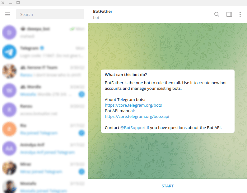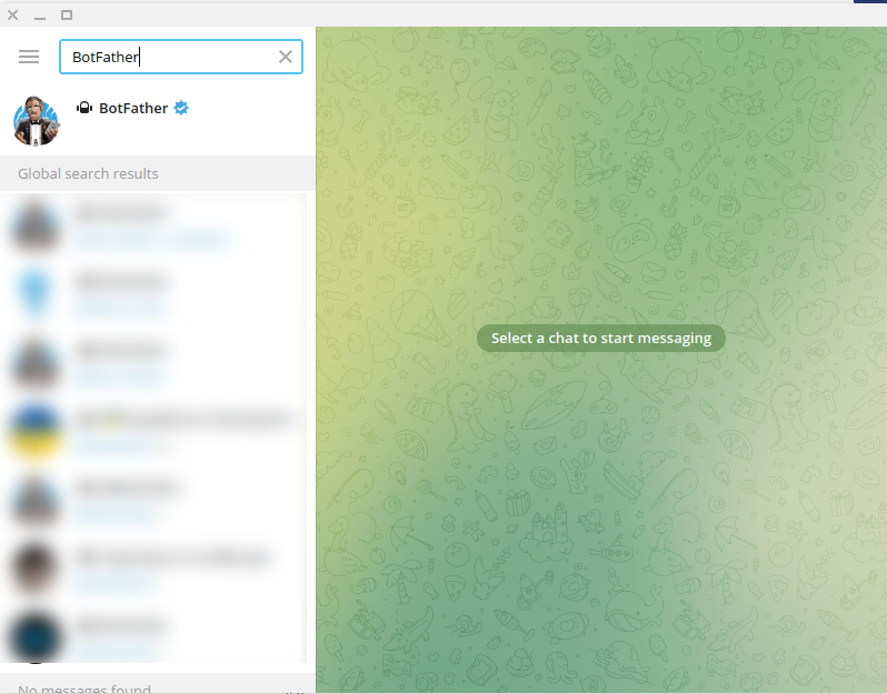 To build a Telegram bot with Prosender, first, open your Telegram App. Then in the search bar of the app, search with the ‘BotFather’ keyword. Then select the verified BotFather account.