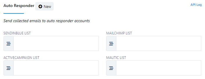 Within this section, you`ll find various fields for configuring specific lists, including `Mailchimp List`, `Sendinblue List`, `Activecampaign List`, `Mautic List`, and `Acelle List`. These fields allow you to define where the collected email addresses should be stored based on your chosen auto responder service.