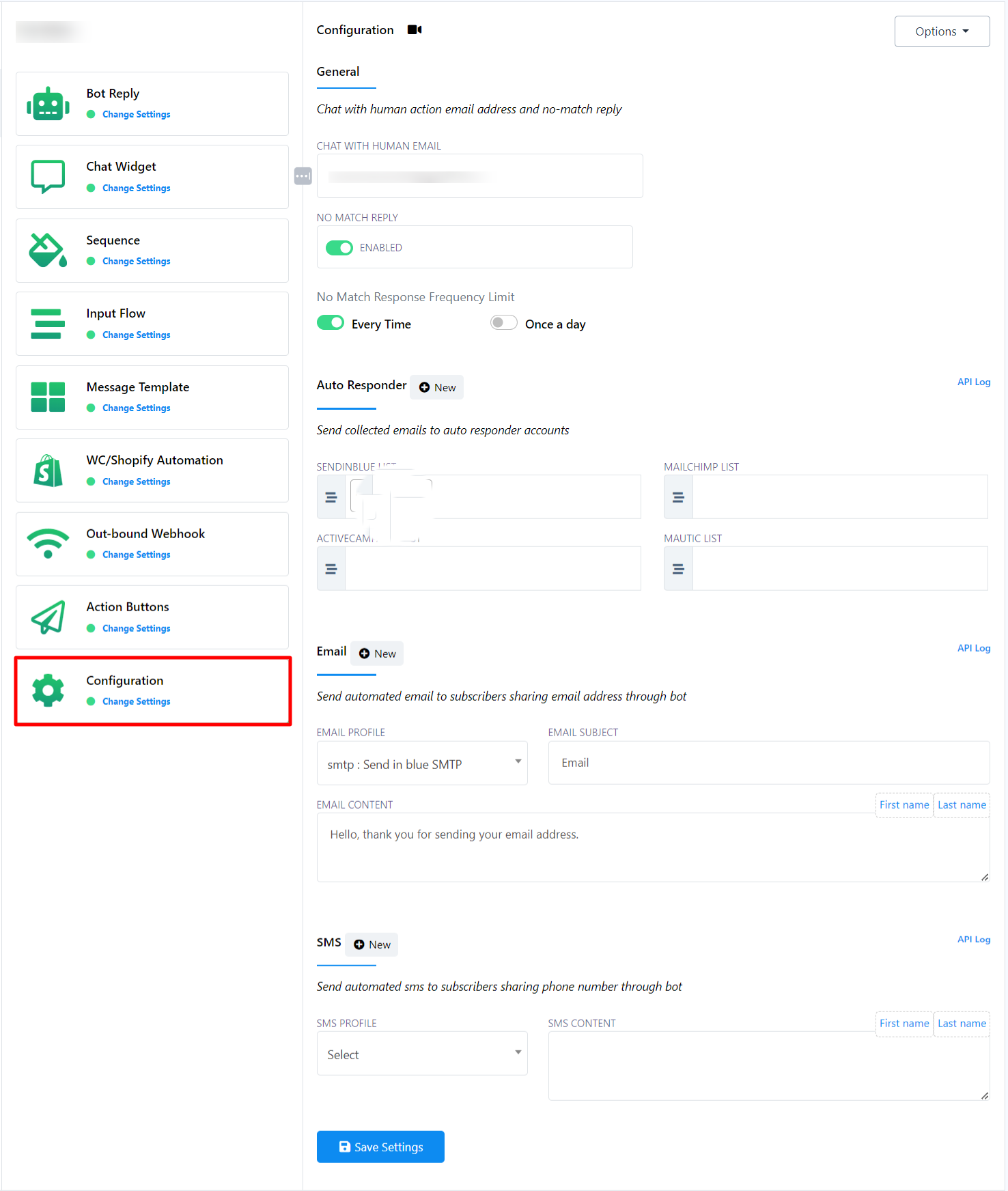 Once you`ve selected the auto responder account, any email addresses collected through the bot will be automatically included in the corresponding account.